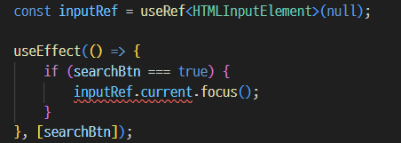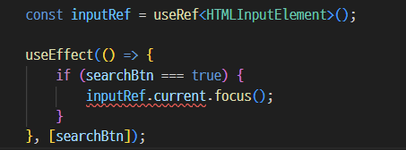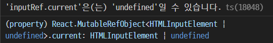 따라서, inputRef.current가 null혹은 undefined가 아닐 시 inputRef.current.focus()를 실행하게 하면 문제를 해결할 수 있다.
