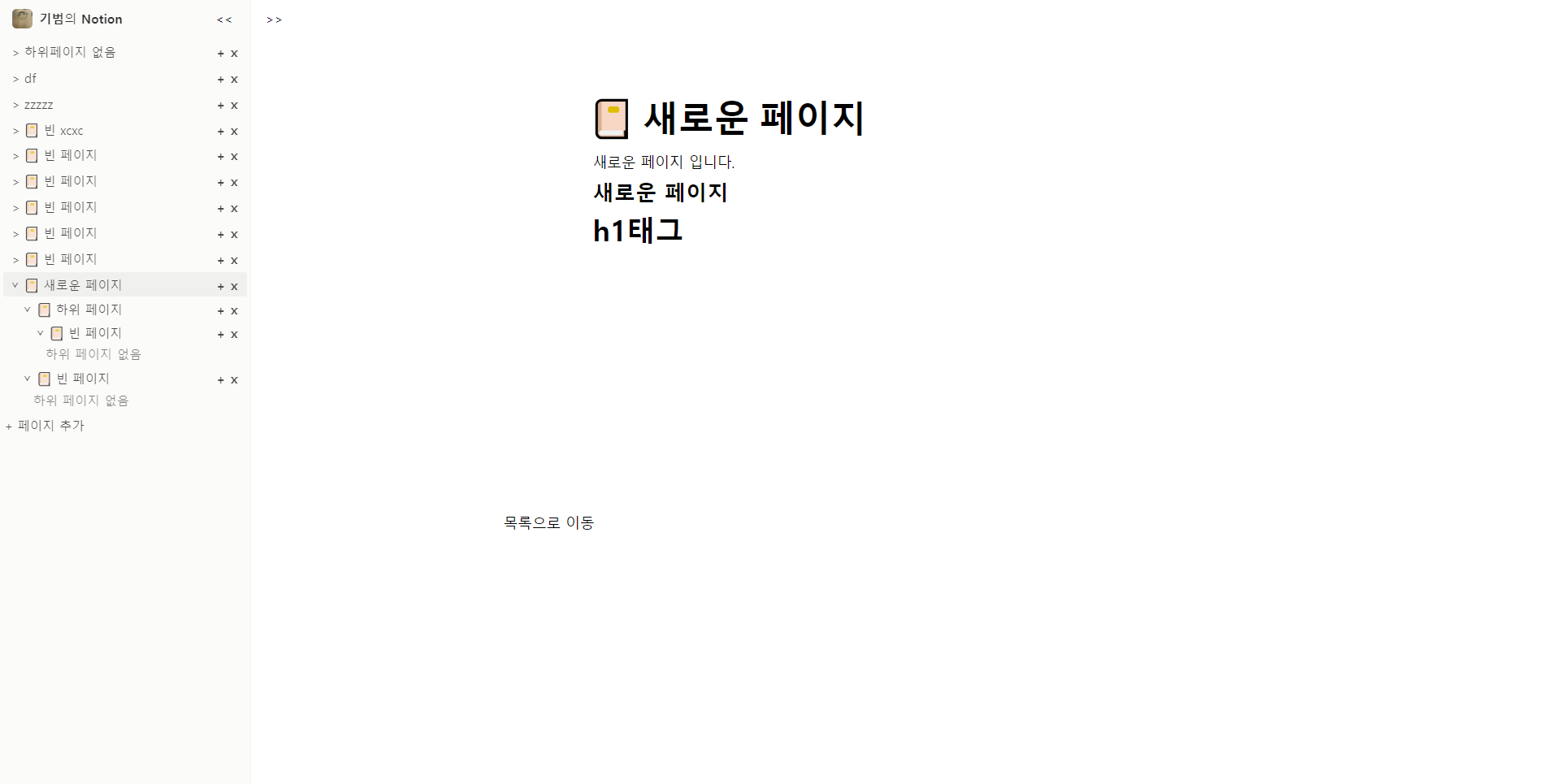 ┌─── src │ ├─── components │ │ ├─── App.js │ │ ├─── editor │ │ │ ├─── DocumentEditPage.js │ │ │ └─── Editor.js │ │ ├─── sidebar │ │ │ ├─── CreateDocumentList.js │ │ │ ├─── DocumentList.js │ │ │ ├─── SideNavbar.js │ │ │ └─── SidebarHeader.js │ │ └─── linkbutton │ │ └─── LinkButton.js │ ├─── api │ │ └─── api.js │ ├─── images │ │ └─── profile.jpg │ ├─── route │ │ └─── router.js │ ├─── style │ │ └─── style.css │ └─── main.js └─── index.html📃 최종 페이지